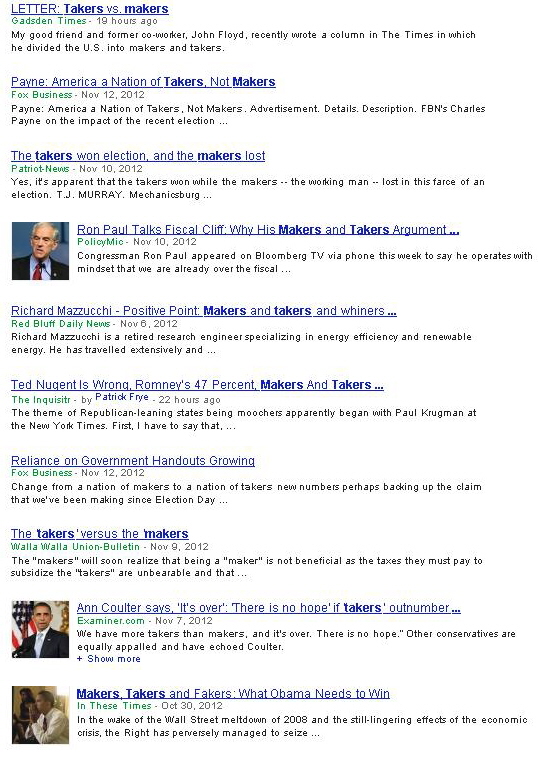 A snapshot, today, of a sampling of news stories and letters using the takers and makers shtick, most from the right: