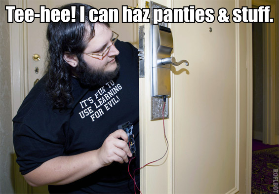 And for low-rent hooker hotels one doesn’t have to worry so much. The panty-sniffers don’t want to get into them. Not enough smartphone, laptop and tablet booty.