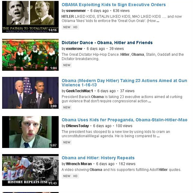 Only at mid-week and two days after the inauguration and WhiteManistan’s best floods YouTube with concerned citizen warnings that Obama = Hitler.