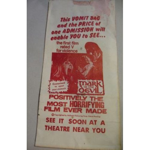 When a kid I went to the original vomit bag as advertising hook movie, Mark of the Devil, for a Saturday matinee in Pine Grove. It worked. Everyone in my grade wanted to go.