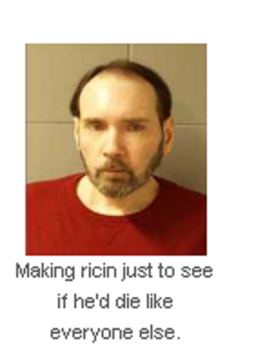 The history of ricin arrests in the US during the war on terror years is worth telling for its illustration of the intersection of the ginned up fear of biological and chemical terrorism and how that has resulted in a process that regularly grinds up and spits out weak and confused people from the fringes of society. And that process is totally unique to America. We own it.