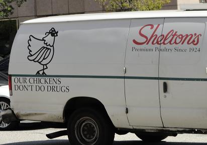When things have turned so rancid the regular news on food is how it is found to be chock full of antibiotics and stuff to sterilize it, “Our chickens don’t do drugs” on a dingy van with the hubcaps fallen off becomes a winning sales slogan.