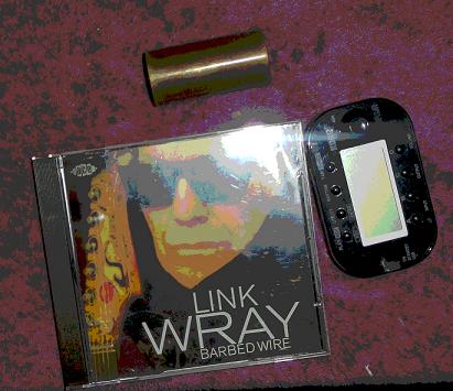 The future’s so bright, ya gotta wear shades. Black plastic made-in-China gadget made this song, written by Link Wray. DD’s coffee table creche kitsch.