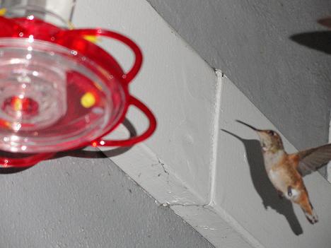 The house’s garden is also a hummingbird restaurant. These, all taken just before dusk, show the birds at their most active. There were four of them, tweeting and bumping each other over what was more than enough for all just before disappearing into the trees for the night.