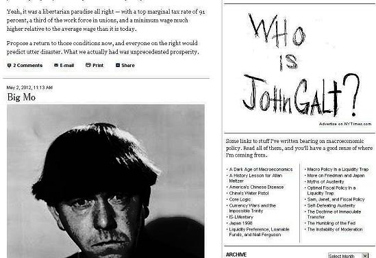 Through the inadvertent magic of streamed keyword advertising, on the Krugman blog at the New York Times, today: